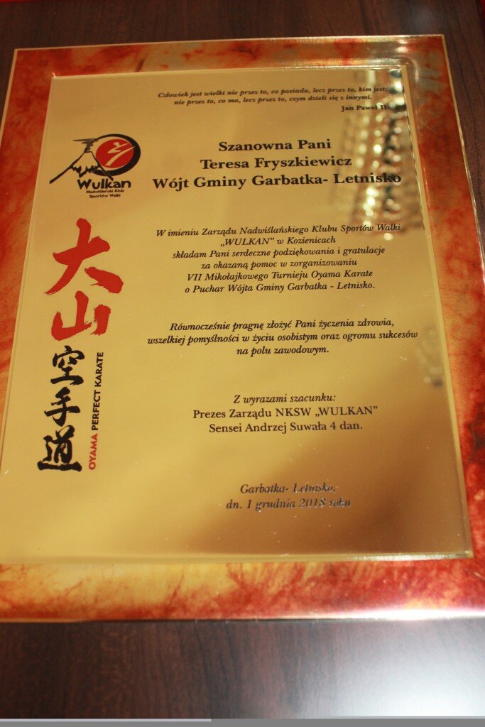 VII Mikołajkowy Turniej Oyama Karate o Puchar Wójta Gminy Garbatka Letnisko, 1 grudnia 2018 roku